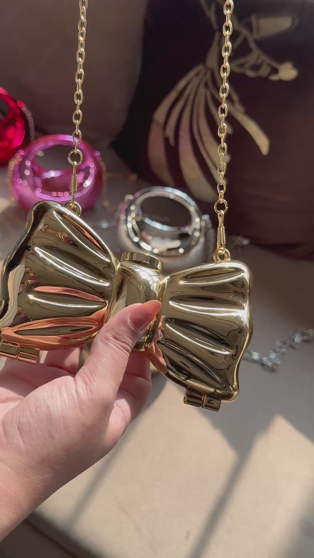Turn up the glam with our Bow Metallic Bag – in Gold, designed for the modern diva who loves to make a statement. Featuring a sleek acrylic finish and a signature gold bow detail, this mini stunner brings the perfect blend of chic and playful to your outfit.