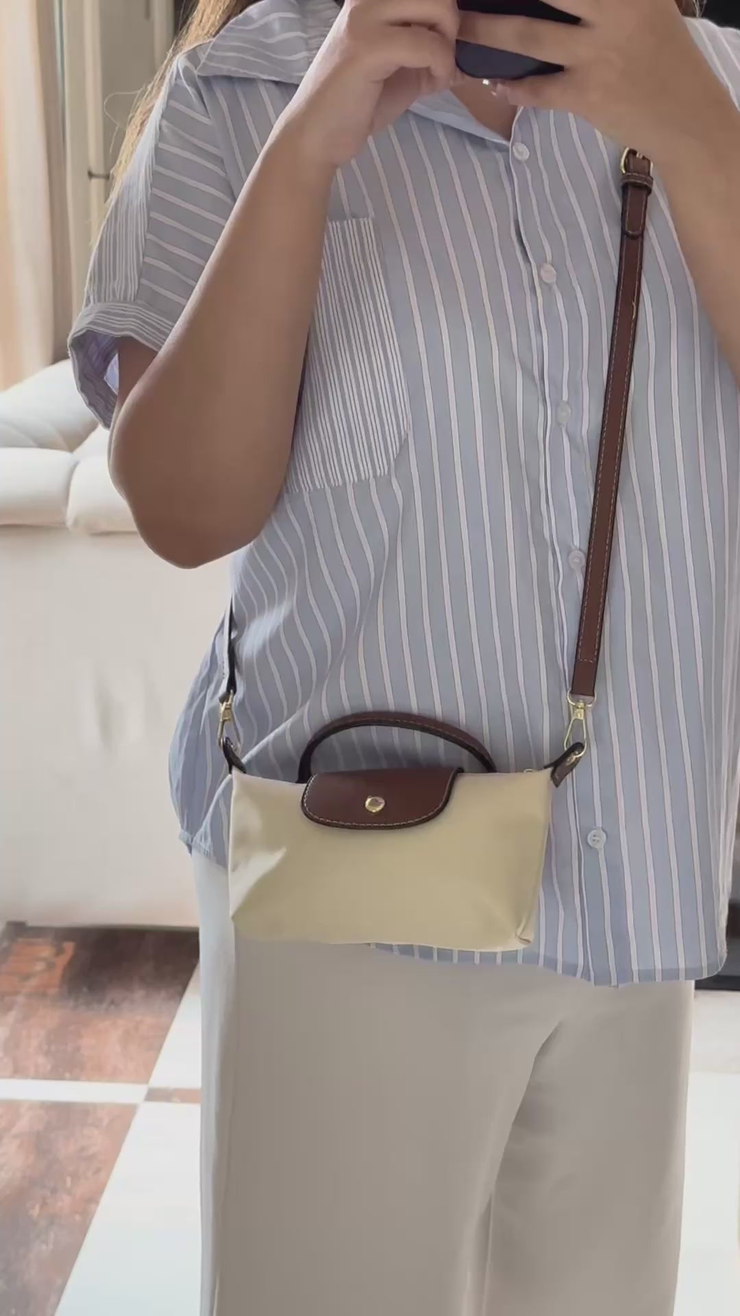 Longchamp Crossbody Bag with Strap - Small Off White (NO LOGO)