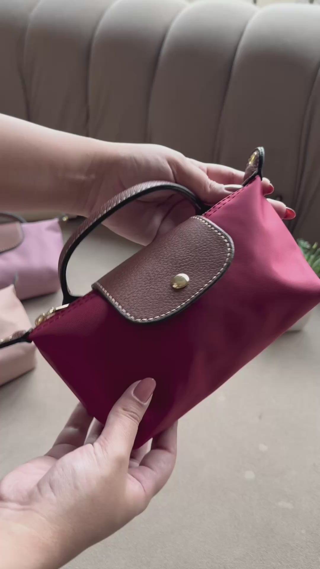 Longchamp Crossbody Bag with Strap - Small Maroon (NO LOGO)