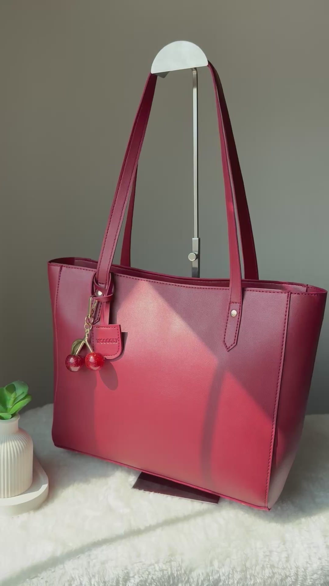 👜 Wooggly Signature Tote Bag – Maroon with Cherry Charm